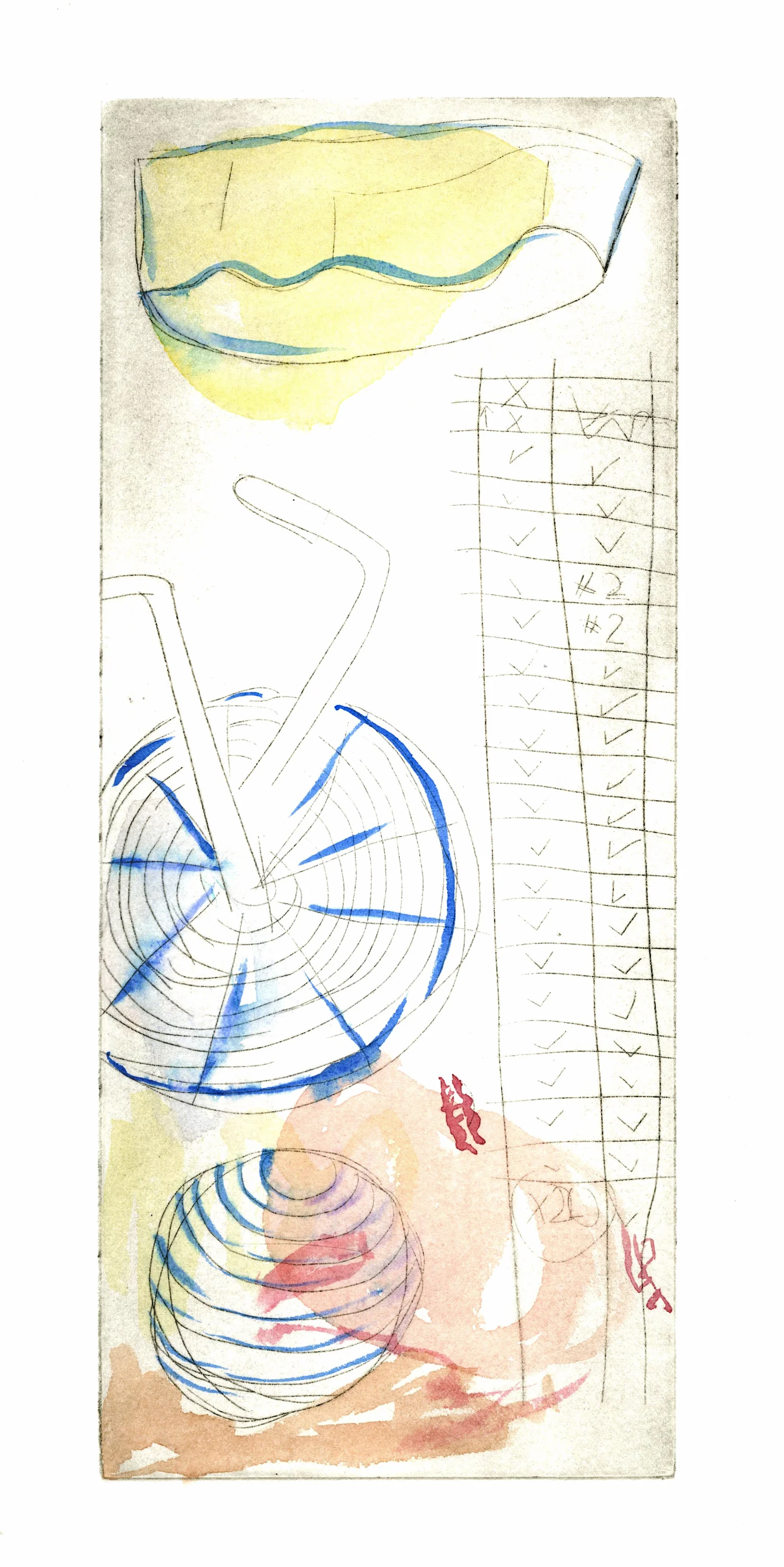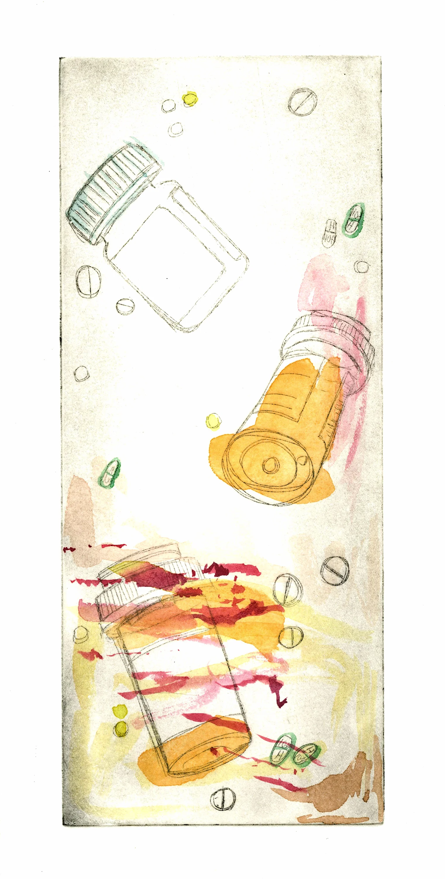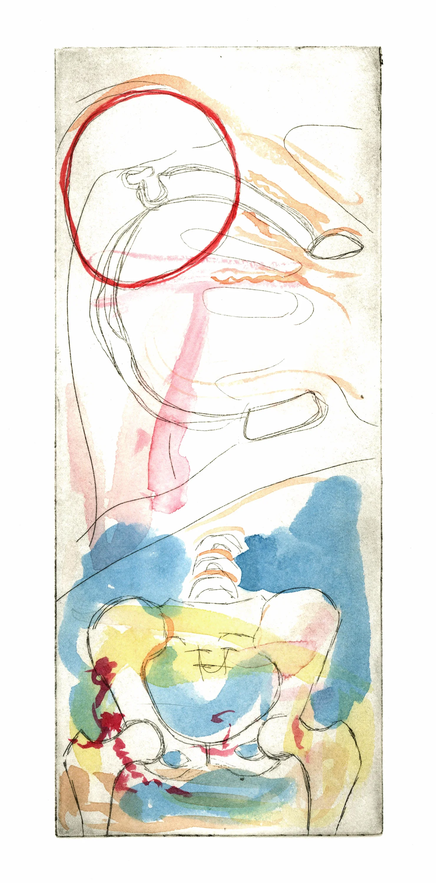 Hip Surgery 5.30b (Medicine), 2017, 12” x 14”, etching and watercolor on paper